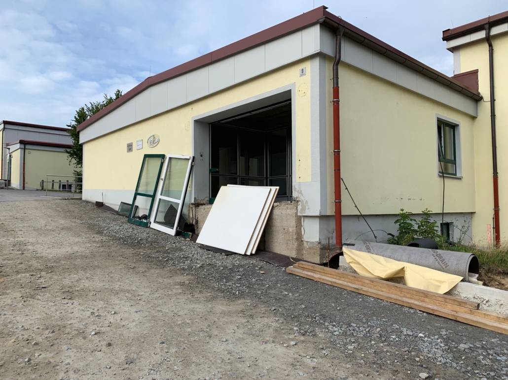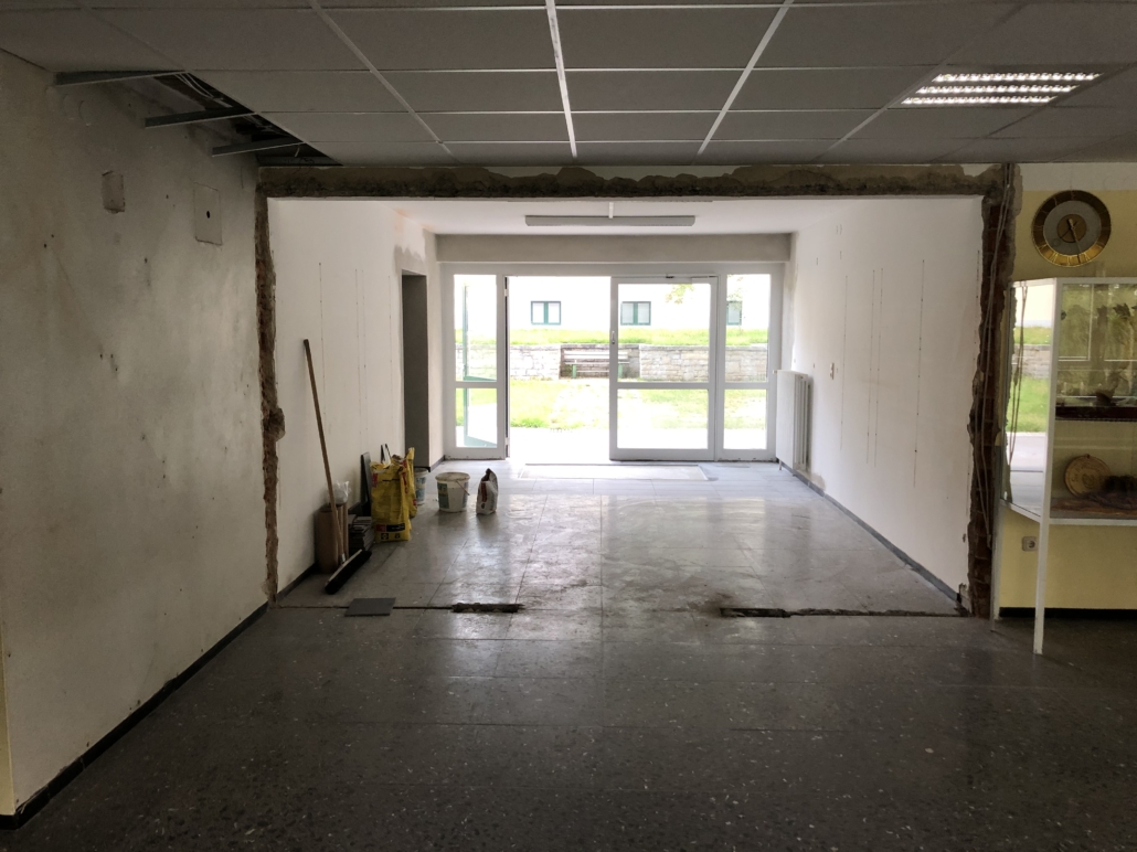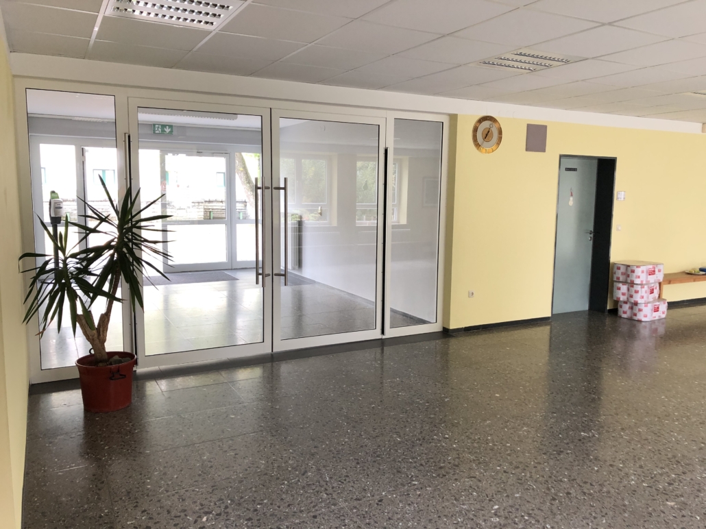 Die aktuellen Eingänge für Schüler und Lehrer wurden aufgelassen und ein neuer Haupteingang für alle im Bereich der bisherigen Bücherei errichtet.